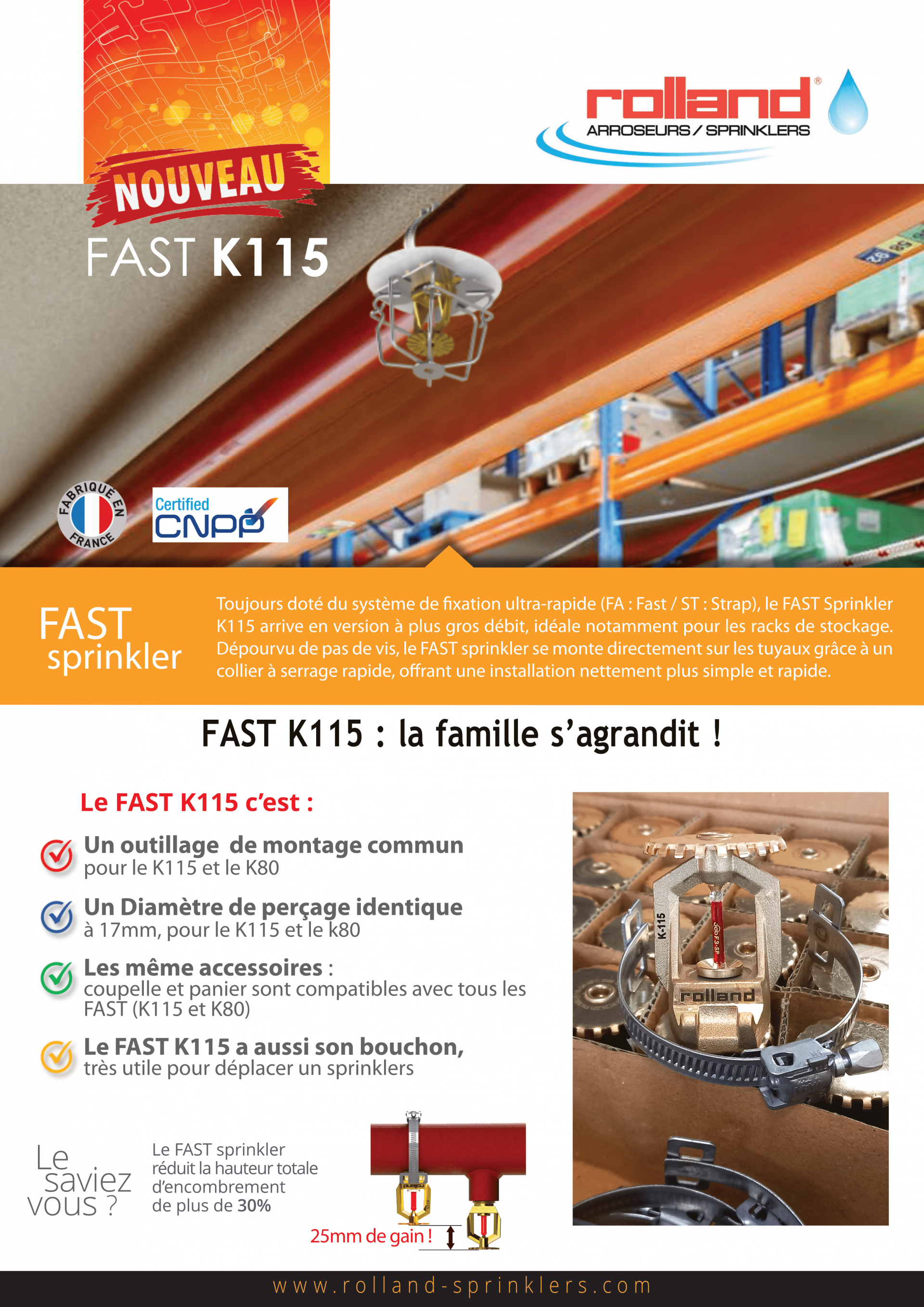 News Congés fête fin année 2025 FAST K115 sprinkler MJC Valve FAST sprinkler Spinkler Haute temperature Nouveau Panier SSU + coupelle